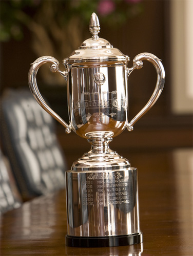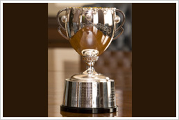 オリムピックゴルフ倶楽部の競技トロフィーや、前理事長 大川清が獲得した日本アマチュアゴルフ選手権優勝トロフィー、世界シニアアマチュアゴルフ選手権 個人の部優勝トロフィーなどを紹介します。これらもクラブのエントランスホールからレストランに向かう廊下横ショーウィンドーで実物もご覧いただけます。